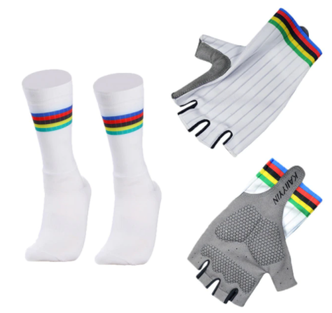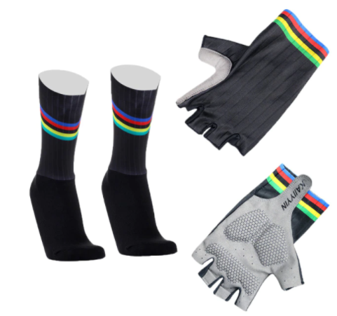 Guanti e Calzini per bici con parte superiore in silicone. Disponibile in tutte le taglie e colorazioni. Prezzo riferito ad una coppia.